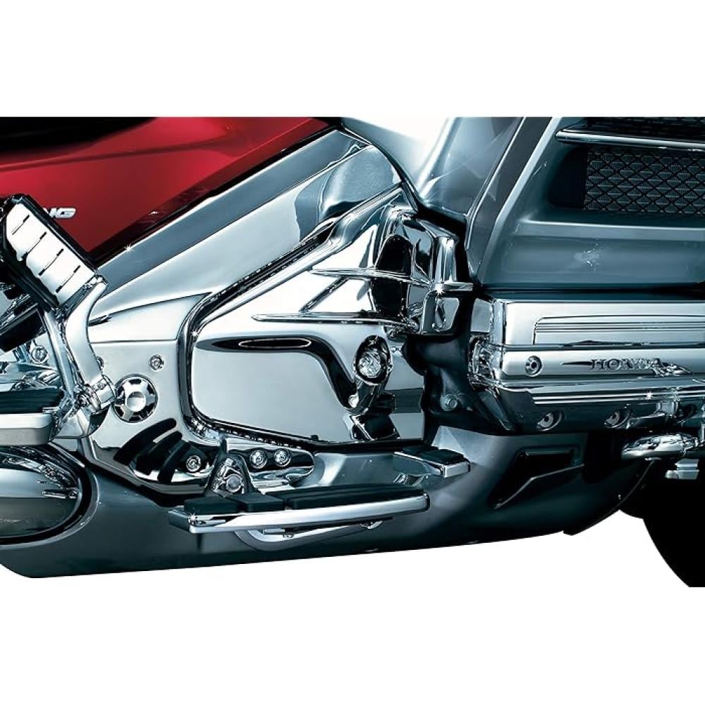 غطاء Louvered Chrome Transmission Side Cover for GL1800 هو غطاء كروم جانبي لمنطقة الزيت وناقل الحركة مخصص لدراجات هوندا جولدوينج GL1800 من شركة Kuryakyn. يتميز بتصميم مخرم (Louvered) أنيق يمنح الدراجة مظهراً فاخراً ومميزاً مع حماية إضافية للأجزاء الجانبية من المحرك.